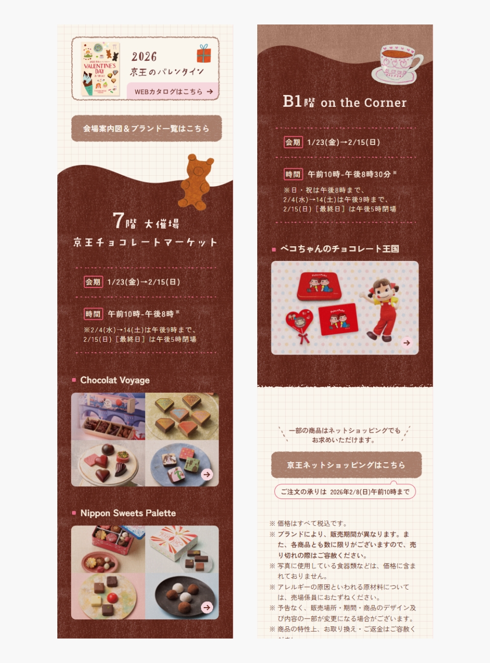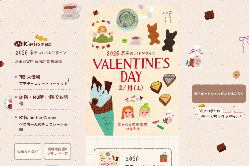 次に京王百貨店のバレンタイン特設サイトを紹介します。モバイルファーストのレイアウトが採用されています。